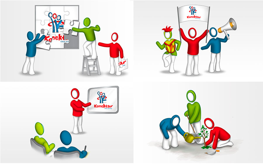 Ilustraciones varias para comunicación interna. Recursos: Ilustrator y Photoshop Cliente: Konektar