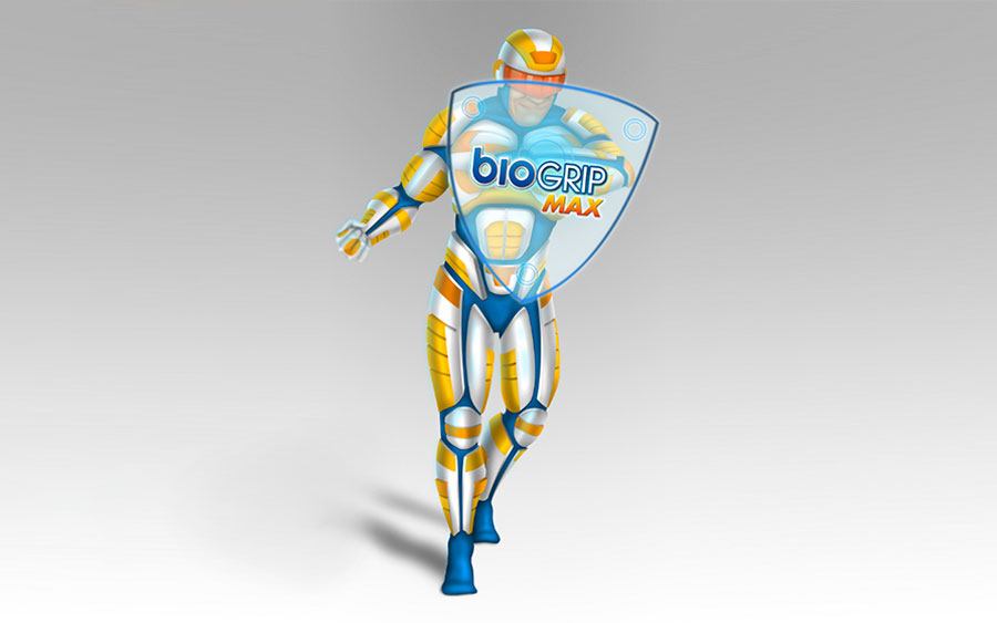 Ilustración de personaje para producto Biogrip Max. Recursos: Illustrator y Photoshop Cliente: Laboratorios Biogen
