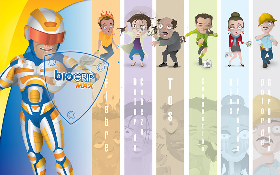 Ilustración de personaje para producto Biogrip Max. Recursos: Illustrator y Photoshop Cliente: Laboratorios Biogen