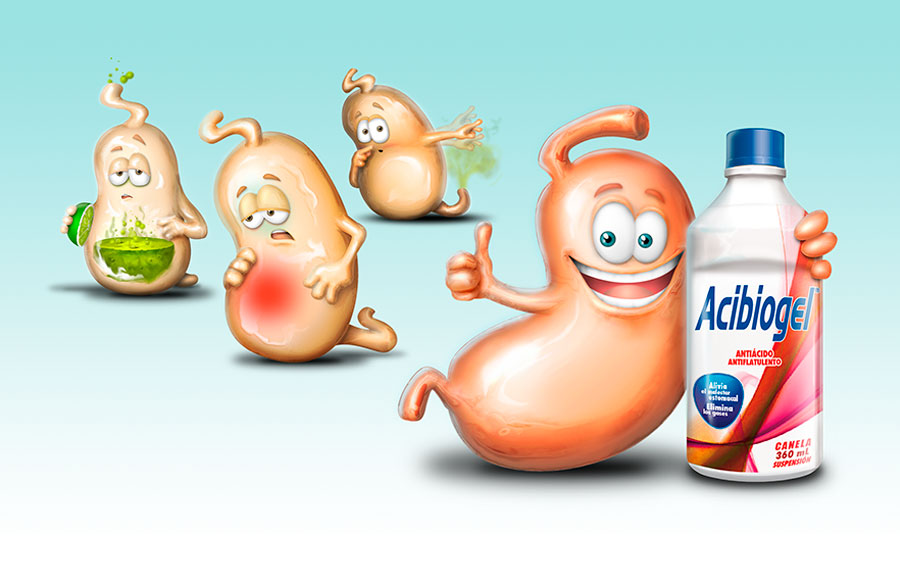 Ilustración estómagos antiácido Acibiogel. Recursos: Ilustrator y Photoshop Cliente: Laboratorios Biogen